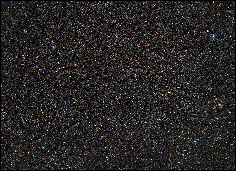 Tonight, I aimed the 400mm F2.8 about 6 degrees SE of Sadr and took 92, 10-second exposures. The stack took some clean-up, and I cropped the edges and corners because they really needed an actual rather than a virtual flat, but hey, for first-light it went pretty well. (Yes, I know the image resembles static from a 1960's TV as well as jewels on a velvet cloth; take your pick.)