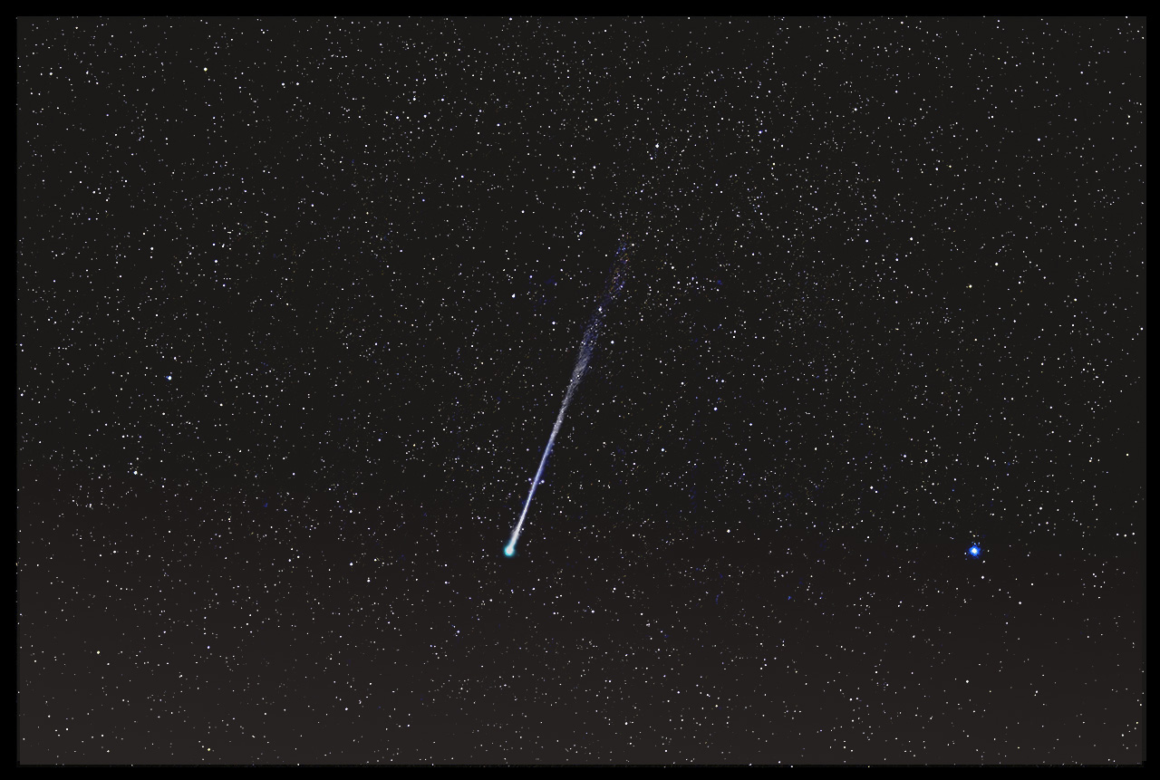 Go on, click it to make it bigger and better. Please. Other experiments in earlier, darker skies using 2-second exposures and both 1600 and 3200 ISO also worked, but in the end, one hundred frames in rising twilight beat 30-70 frames in somewhat darker, perhaps somewhat hazier air. The bright star is Markab, aka "Alpha Pegasi" although it is described as the "third brightest star in Pegasus." So why "Alpha?" Go figure. Anyway, it's the southwest corner of the Great Square, and the comet was well boxed within said square. There's about 4 degrees of tail captured there which is less than half of what imagers under decent skies are catching, but it's far more than I could see with 14x70 binoculars. The data reaches to just below 13th magnitude. Not bad. I am sure much more is possible. Did I mention what dreadful skies I enjoyed this morning? Sungrazing comet 2026 A1 MAPS evaporated near perihelion a couple of weeks ago; this one is the consolation prize. Unless we are very lucky, it will emerge into the evening sky too low to be spectacular when viewed from mid-northern latitudes such as mine. I'm still awaiting the proper mix of calm and inspiration to install, configure, and tweak all that is needed to get the Mele 4C and Wave 100i to perform as desired. All in good time. A prospective use just far enough out to not feel rushed would help as would blind resignation to just get it all done at last.